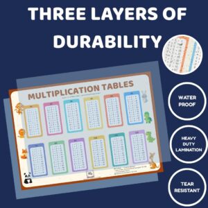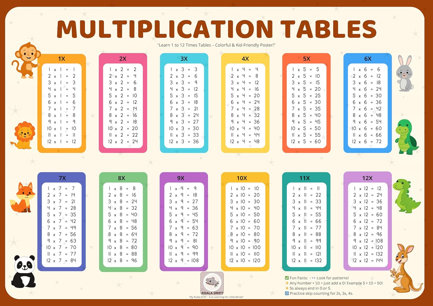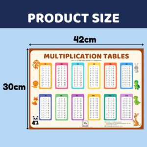 Side 1: Clear and colourful multiplication tables (1–12) for daily practice