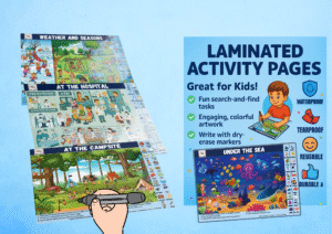 Thanks to its write & wipe surface, children can enjoy the activities repeatedly without wasting paper.